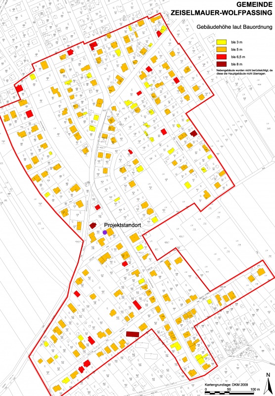 Um zu beurteilen, ob sich eine geplante Mobilfunkanlage harmonisch in den Umgebungsbereich einfügt, wurde eine räumliche Analyse durchgeführt. Dabei wurden Höhen von Gebäuden, baulichen Anlagen und vertikalen Elementen erhoben und analysiert.