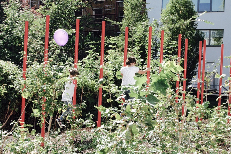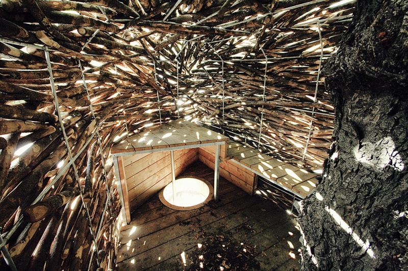 Ein Baumhaus als "Bird´s Nest" im Zentrum des Parks bietet in luftiger Höhe einen Rückzugs- und Eroberungsraum, erlaubt den Kindern neben seinen klettertechnischen Angeboten einen Überblick über den Park. Mit anderen Augen sehen können. Rückzugsort. Spielplatz. Ausguck. Schlupfwinkel. Versteck. Höhle.