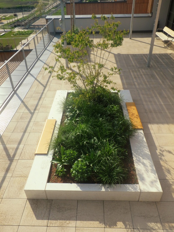 Da der Campus auf der sprichwörtlichen grünen Wiese errichtet wurde, stellen die Baumneupflanzungen (mittelfristig) ein zentrales Element des Campus-Freigeländes dar.